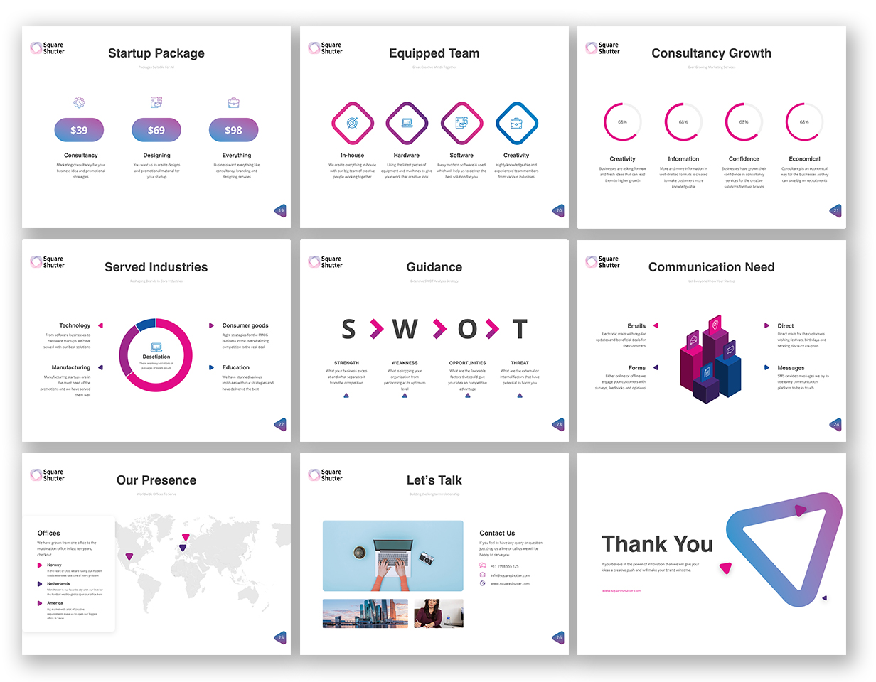 We create modern slide designs that are material and visually compelling with smooth transition effects. Presentation slides should always be customized as per the client you’re pitching and must ace his business requirements. Monotonous same presentation design for each and every client meeting cannot help your business grow. Surprise your clients with your business readiness and get their biased attention for you.